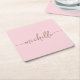 Elegance Blush Pink Gold Monogram Script Signature Square Paper Coaster