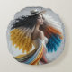 Elegance in Contrast: Curly-Haired Woman Round Cushion