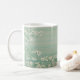 An elegant mug featuring delicate cherry blossoms that embodies Japanese aesthetic sensibility. White sakura petals gracefully dance across a soft blue-green background, capturing the essence of seasonal transitions and Japanese elegance. Perfect for your morning coffee or afternoon tea, this mug brings tranquil moments to your daily routine. The modern Japanese design makes it an ideal gift that blends traditional beauty with contemporary style.