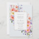 Elegant Garden shower invitation features colourful bouquets of pink and purple florals. Personalise with your information or click "Click to customise further" to edit font styles, size and colours.