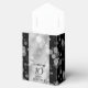 Celebrate the 10th wedding anniversary in style with this commemorative favour box! Elegant black serif and sans serif lettering with hexagonal confetti on a tin background edged with black bars add a memorable touch for this special occasion and milestone. Customise with the happy couple's names. Add even more customisation with a date for the tin anniversary.