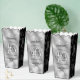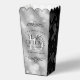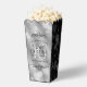 Celebrate their 10th tin wedding anniversary (and a movie-worthy love story) with these stylish popcorn style favour boxes! Elegant lettering with hexagonal confetti on simulated tin foil bordered by black panels add a memorable touch for this special occasion and milestone. Personalise with couple's names, dates of marriage, and messages.