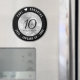 Celebrate the 10th tin wedding anniversary and remind guests of this impending milestone with this save-the-date magnet! Elegant black and white serif and sans serif lettering with hexagonal confetti on a tin foil background add a memorable touch for this special occasion and milestone. Customise with the happy couple's names and years of marriage.