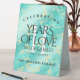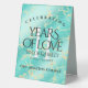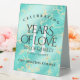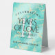 Add an extra special touch to 11th turquoise wedding anniversary celebrations with this stylish table tent sign! Elegant lettering on a yellow marble and greenish blue background add a memorable touch for this special occasion and milestone. Customise with couple's names, dates of marriage, and congratulatory messages.