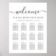 Elegant downloadable wedding seating chart poster for up to 12 tables featuring "welcome" in a stylish script with swashes, "Find Your Seat," your names and wedding date in elegant serif typography, and the table numbers and guest names in simple modern typography. Select the digital download option to edit with last minute changes and print locally.