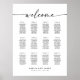 Modern Script Wedding Seating Plan. Welcome sign. Personalised Simple Minimalist Seating Chart for 120 guests (12 tables). Just click the customise further link, shown under the text personalisation area on the right, and choose your custom colour background. This sign poster template makes it fast and easy to create stunning additions to your wedding decor. Signs can be enlarged, there are many sizes to choose from, as well as options for custom framing and matting.