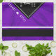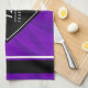 Celebrate the 12th silk wedding anniversary with this stylish hand towel! Elegant white lettering on a luxurious purple silk background bordered by black and white bars add a memorable touch for this special occasion and milestone. Personalise with the couple's names and dates of marriage.
