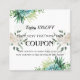 Add a touch of botanical charm to your business with this beautifully designed 15% Off Coupon Card. Featuring soft watercolor succulents and florals, this template is perfect for salons, spas, boutiques, or any small business looking to reward loyal customers. Easily customisable to suit your brand, this stylish card is both professional and inviting.