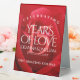 Add an extra special touch to 15th rose wedding anniversary celebrations with this stylish table tent sign! Elegant lettering on a romantic red rose background add a memorable touch for this special occasion and milestone. Customise with couple's names, dates of marriage, and congratulatory messages.