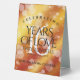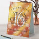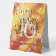 Add an extra special touch to 16th golden topaz wedding anniversary celebrations with this stylish table tent sign! Elegant lettering with hexagonal confetti on a deep yellow-red-orange moire background add a memorable touch for this special occasion and milestone. Customise with couple's names, dates of marriage, and congratulatory messages.