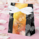 Celebrate the 16th golden topaz wedding anniversary in style with this commemorative favour box! Elegant black serif and sans serif lettering with hexagonal confetti on a deep red-yellow-orange moire background edged with black bars add a memorable touch for this special occasion and milestone. Personalise with the happy couple's names and date(s) of marriage.