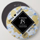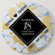 Celebrate the 18th porcelain wedding anniversary with this stylish button! Elegant black and white lettering with gold-dusted hexagonal confetti on a white and porcelain blue marbled background add a memorable touch for this special occasion and milestone. Personalize with the couple's names and dates of marriage.