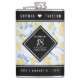 Celebrate the 18th porcelain wedding anniversary with this commemorative hip flask! Elegant serif and sans serif lettering with gold-dusted hexagonal confetti on a white and porcelain blue marbled background add a memorable touch for this special occasion and milestone. Customise with the happy couple's names, and years of marriage.