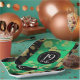 Celebrate their 19th jade wedding anniversary with these stylish paper plates! Elegant black and white lettering with gold-dusted hexagonal confetti on speckled, jade green and black backgrounds add a memorable touch for this special occasion and milestone. Personalise with couple's names and dates of marriage.