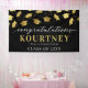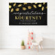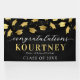 Celebrate your graduation in style with our modern party banner. Boasting a sophisticated black backdrop that can be customized to any color of your choice, this banner further elevates the mood with its falling faux gold foil mortarboard caps design. To make it more personal, it features a congratulations text template that you can easily modify. Perfectly combining aesthetics and personalization, this banner is a must-have for any contemporary graduation party.