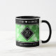 Celebrate the 20th emerald wedding anniversary with this commemorative mug. Elegant white lettering with hexagonal confetti on an emerald green background add a memorable touch for this special occasion and extraordinary milestone. Personalise with the couple's names and years of marriage. Reverse shows identical design.