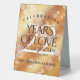 Add an extra special touch to 22nd copper wedding anniversary celebrations with this stylish table tent sign! Elegant lettering with hexagonal confetti on a copper foil background add a memorable touch for this special occasion and extraordinary milestone. Customise with couple's names, dates of marriage, and congratulatory messages.