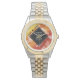 Celebrate the 23rd imperial topaz wedding anniversary and a love that stands the test of time with this stylish watch! Elegant black and white lettering with hexagonal confetti on a deep red-yellow-orange moire background add a memorable touch for this special occasion and extraordinary milestone. Personalise with the couple's names and dates of marriage.