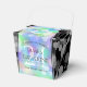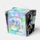 Celebrate their 24th opal wedding anniversary with these stylish favour boxes! Elegant lettering with hexagonal confetti on an iridescent opal background edged by black bars add a memorable touch for this special occasion and extraordinary milestone. Reverse panel shows identical design. Customise with couple's names, dates of marriage, and messages.