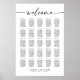 Modern Script Wedding Seating Plan. Welcome sign. Personalised Simple Minimalist Seating Chart for 250 guests (25 tables). Just click the customise further link, shown under the text personalisation area on the right, and choose your custom colour background. This sign poster template makes it fast and easy to create stunning additions to your wedding decor. Signs can be enlarged, there are many sizes to choose from, as well as options for custom framing and matting.