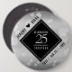 Celebrate the 25th silver wedding anniversary with this stylish button! Elegant black and white lettering with hexagonal confetti on a silver foil background add a memorable touch for this special occasion and extraordinary milestone. Personalize with the couple's names and dates of marriage.