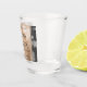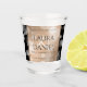 Celebrate the 28th wedding anniversary with this commemorative shot glass. Elegant black serif lettering with hexagonal confetti on an off-white linen background edged by black bars add a memorable touch for this special occasion and extraordinary milestone. Customise with the happy couple's names, years of marriage, and personalised congratulatory messages for their linen anniversary.