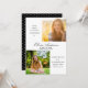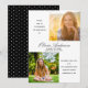 This modern minimal graduation party invitation offers two square pictures on the front. Custom text allows you to add the name and school of the graduate and the party invitation details. The back side is black white small white dot pattern.