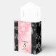 Celebrate the 5th wedding anniversary in style with this commemorative favour box! Elegant black serif and sans serif lettering with hexagonal confetti on a rich pink background edged with black bars add a memorable touch for this special occasion and milestone. Customise with the happy couple's names, and add a date for their rose quartz anniversary.