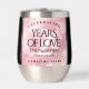 Make the 2nd rose quartz wedding anniversary an unforgettable celebration with this commemorative stainless steel stemless wine tumbler! Elegant lettering with hexagonal confetti on a rich pink background add a memorable touch for this special occasion and milestone. Customise with couple's names, dates of marriage, and congratulatory message. Reverse shows identical design.