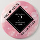 Celebrate the 2nd rose quartz wedding anniversary with this stylish button! Elegant black and white lettering with hexagonal confetti on a rich pink background add a memorable touch for this special occasion and milestone. Personalise with the couple's names and dates of marriage.