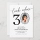 Celebrate an incredible milestone in refined, timeless style with this elegant Look Who’s 30 photo birthday invitation. Featuring a clean, modern layout, the design highlights your chosen photo inside a delicate illustrated frame, finished with a soft bow detail for a charming and graceful touch.