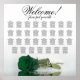 This exquisite seating chart features a romantic and timeless design with 31 tables that can seat 310 guests, accommodating 10 guests per table. The centerpiece of the design is a stunning long-stemmed deep emerald green coloured rose reflecting in water, which exudes elegance and grace. The title "Welcome! Please find your table" is written in fancy script lettering and adds a touch of sophistication to the chart. The names of the couple and wedding date can be added at the bottom to personalise it for your special day. This seating chart is a wonderful way to enhance the beauty and style of your wedding reception while ensuring your guests can easily find their seats.