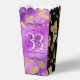 Celebrate their 33rd amethyst wedding anniversary (and a movie-worthy love story) with these stylish popcorn style favour boxes! Elegant lettering with gold-dusted hexagonal confetti on an amethyst purple background bordered by black panels add a memorable touch for this special occasion and extraordinary milestone. Personalise with couple's names, dates of marriage, and messages.