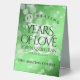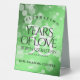 Add an extra special touch to 38th emerald wedding anniversary celebrations with this stylish table tent sign! Elegant lettering with hexagonal confetti on an emerald green background add a memorable touch for this special occasion and extraordinary milestone. Customise with couple's names, dates of marriage, and congratulatory messages.
