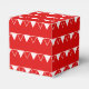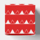Elegant and cute Christmas design with a 3D badge with a Happy Holidays script and white and red triangles pattern in a Christmas red colour.