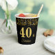 Elegant 40 and fabulous Birthday with festive golden confetti on black Paper Cups. Text can be personalised.