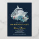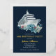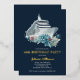 Cruise ship 40th birthday party trip real gold foil invitation. Personalise it with her name and the party details including the dates, cruise line, departure port, RSVP information, etc. Design with a watercolor boat and beautiful flowers on a navy blue background.