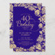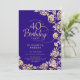 Purple gold floral 40th birthday party invitation. Elegant design featuring roses, faux gold foil and typography script font. Trendy invite card perfect for a stylish female bday celebration. Can be customised to any age. Personalise with your own details. Printed Zazzle invitations or instant download digital printable template.