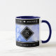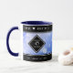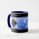 Celebrate the 45th sapphire wedding anniversary with this commemorative mug. Elegant white lettering with hexagonal confetti on a sapphire blue background add a memorable touch for this special occasion and extraordinary milestone. Personalise with the couple's names and years of marriage.