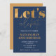 Elegant 49th birthday invitations Navy Gold glam modern calligraphy typography feminine milestone classic elegant glam