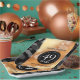 Celebrate their 49th copper wedding anniversary with these stylish paper plates! Elegant black and white lettering with hexagonal confetti on copper foil and black backgrounds add a memorable touch for this special occasion and extraordinary milestone. Personalise with couple's names and dates of marriage.
