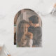 This wedding invitation is a perfect blend of elegance, love, and modern sophistication. Featuring a stunning photo of the couple, caught in a tender moment, it exudes a sense of warmth and connection. The arch-shaped design adds a contemporary touch, framing the beautiful couple with elegance. The minimalist, handwritten script captures the essence of their personal journey, making this invitation not just a piece of stationery, but a true expression of their love story.