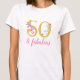 Elegant 50 and Fabulous Gold and Pink Floral T-Shirt