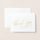 Chic 50th birthday party folded thank you card featuring "thank you" in an elegant calligraphy script rendered in genuine gold foil. Personalise your thank you message and signature on the inside, or leave blank for a handwritten note.