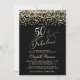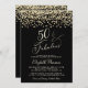 Elegant 50th Birthday Party Gold Glitter Black Invitation