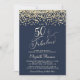 Elegant 50th Birthday Party Gold Glitter Blue Invitation