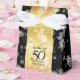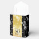 Celebrate the 50th wedding anniversary in style with this commemorative favour box! Elegant black serif and sans serif lettering with hexagonal confetti on a golden and black striped background add a memorable touch for this special occasion and extraordinary milestone. Customise with the happy couple's names. Add even more customisation with a date for the golden anniversary.