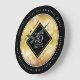Celebrate the 50th golden wedding anniversary and a love that stands the test of time with this commemorative clock! Elegant black and white lettering with hexagonal confetti on a gold foil background add a memorable touch for this special occasion and extraordinary milestone. Customize with the couple's names, years of marriage, and congratulatory messages.