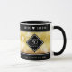 Celebrate the 50th golden wedding anniversary with this commemorative mug. Elegant white lettering with hexagonal confetti on a gold foil background add a memorable touch for this special occasion and extraordinary milestone. Personalise with the couple's names and years of marriage. Reverse shows identical design.