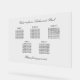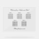 Elegant 5 Table Seating Chart Acrylic Sign, please personalise the names of the couple and the names of the guests along with any of the other text that you may wish to personalise. An elegant seating chart featuring stylish black text in a clean minimalistic layout on a clear transparent background.